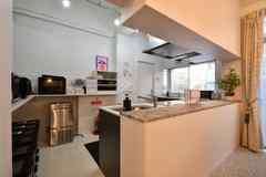 大きなソファと開放的なダイニングテーブルで過ごす、マイペースな時間。カウンターで淹れたてのコーヒーをのんびりと飲む、穏やかな1日がはじまります。