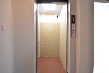 4階まで階段を上るのは大変…。入居者さんたちの日々の生活をアシストするべく、エレベーターを設置しています。リビングや水まわりへの移動や、たくさん買い物をして帰ってきたときもラクラク。
