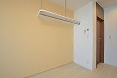 出勤の準備や就寝前など、ちょっとしたときに使いたい洗面台は部屋のなかにあります。毎日はもちろんのこと、とても疲れていて部屋を出る元気がないときにも重宝するはず。その他にも物干しのできるベランダ、オープンタイプの収納が全室に備え付けです。