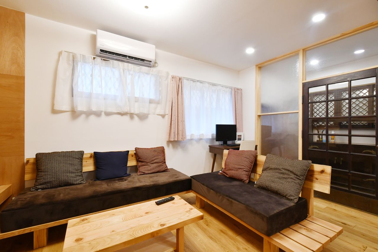 リバ邸Aminif京都 銀閣寺道は、築不詳の長い歴史を持つ古民家を、2018年にリノベーションして誕生しました。残存する最古の資料では昭和4年1929年の記録が残っており、それ以前の記録は消失している様ですが、判明しているだけでほぼ100年歴史があります。代々、医師や薬師が住んだと言われる建物は、ほぼ100年の時間の経過を感じさせない佇まい。だけど、どこかレトロで懐かしい。近くには銀閣寺や哲学の道、真如堂などの観光名所に囲まれ、探索すればするほど新しい発見があり魅力ある場所です。京都駅、四条河原町など市内主要部、下鴨デルタや叡山鉄道の出町柳、平安神宮、京都市美術館、近代美術館などが集う岡崎エリア、梅や紅葉の名所の北野天満宮の名所へもバス一本。アクセスも便利な場所です。また、京都大学、京都造形芸術大学などの大学があり、学生さんにも人気のリーズナブルで美味しいごはんやさんやカフェが多いのも特徴です。