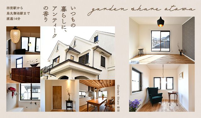 2021年3月リニューアルオープン! Garden Share 音羽は京都の東の玄関口である山科区に位置しています。緑に囲まれ琵琶湖疏水も近く静かな時間を過ごしながらも市内へのアクセスが良い場所になります。車・バイクで市街に10分、駅まで徒歩10分でJR・地下鉄・京阪・高速IC、全ての交通アクセスが良いエリアで交通・居住性共に評判のいい住宅地の一角にあります。治安もとても良い学区です。この建物は元々、市内のとある大学の教授の邸宅として建てられた洋館タイプの建物で、白を基調とした建物にアンティークモダンと住宅を融合させデザインしたシェアハウスです。邸宅全体で60坪あり、広めの住居と庭も備えておりリビング・ダイニング合わせては15畳程あります。ひとつひとつの部屋は広めの設定、キッチン設備、Wi-Fi、駐輪場、エアコン、洗濯機、乾燥機すべて無料。快適な生活を過ごすには最適な環境です。少し大きめの邸宅に5人の方と心地よく過ごせる環境作りを心掛けて作りあげています。これだけの広い家に住む機会は少ないと思っています。※ガーデンシェア音羽は現在内覧受付中です。皆さまのお問い合わせお待ちしてます。先行予約特典あり。