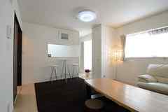 専有部はDIY可能。リビングは吹き抜けのため開放感があります。
