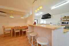 【自然素材の古民家シェアハウス】古民家をリノベーションして生まれた温もりあるシェアハウスです(2016年8月)。歴史を感じさせる柱や梁を活かしながら、広々とした共有リビングやキッチン、モダンな琉球畳の畳スペースを備え、居心地のよい空間となっています。内装には漆喰の壁や無垢の杉板フローリングなど、自然素材をふんだんに使用し、落ち着いた雰囲気があります。一般的な賃貸住宅ではなかなか味わえない、古民家ならではの暮らしを楽しむことができます。