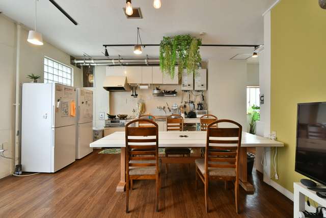 もとは縫製工場だった建物を2020年春リノベーション。古いモノの良さを磨きながら、モダンなデザインを取り入れ住人さんや地域の方ともDIYを行いました。個性的なお部屋ばかりで、同じ部屋はありません。全9室。ぜひ、好みのお部屋を見つけていただきたいです。リビングは広々開放的で、会話が弾むコミュニティーキッチンが魅力です。お風呂とシャワールームを完備、トイレは2つ、洗面は3つあり水回りが充実。快適に生活しながら、シェアメイトとほっこりシェア生活始めませんか?