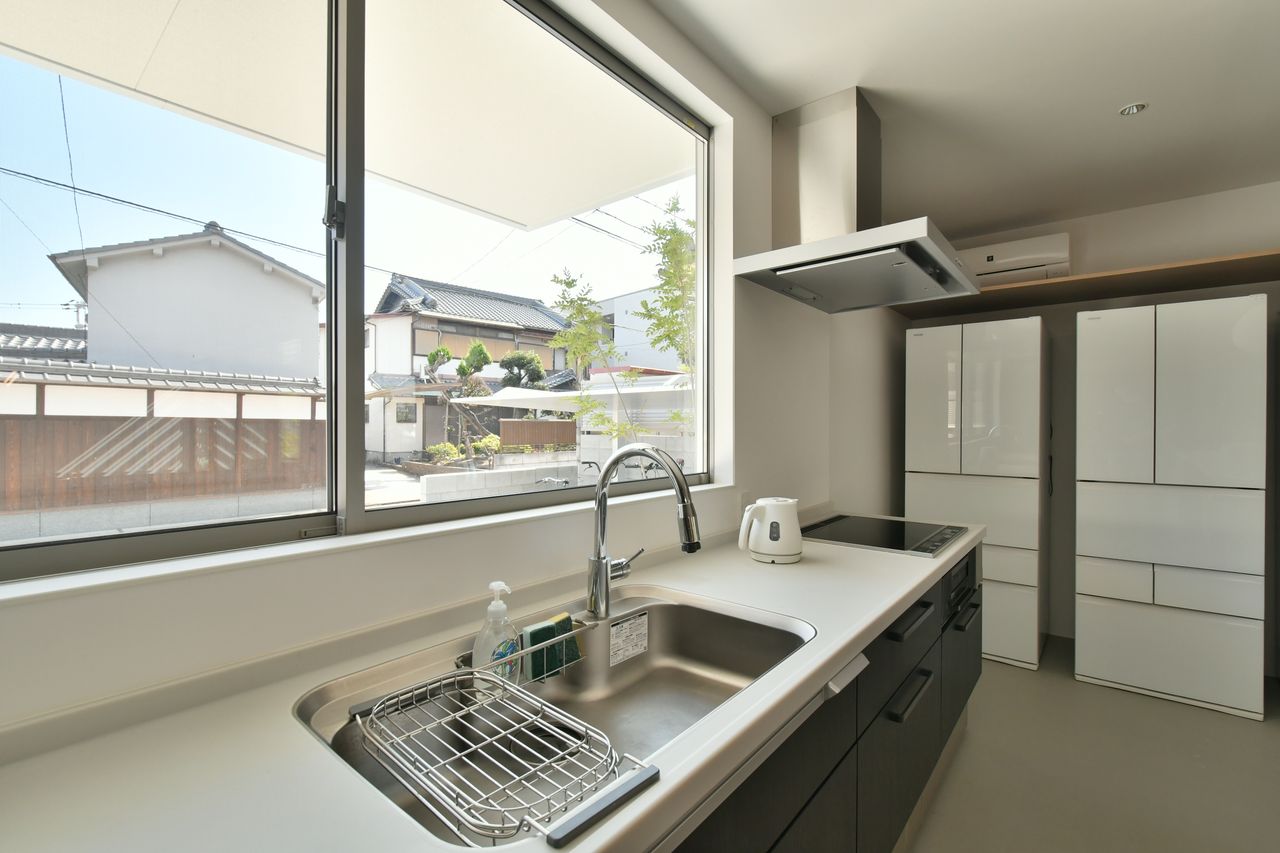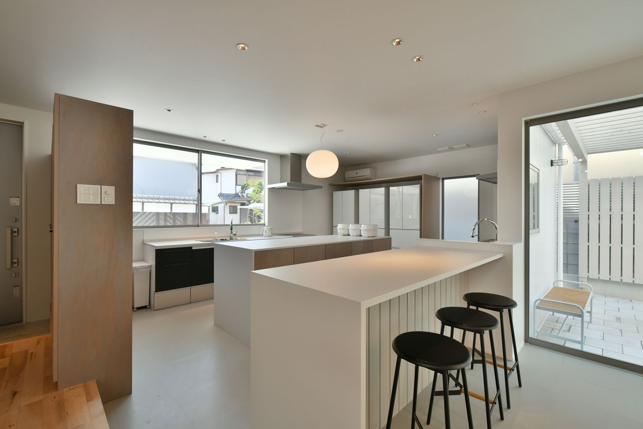大きなソファと開放的なダイニングテーブルで過ごす、マイペースな時間。カウンターで淹れたてのコーヒーをのんびりと飲む、穏やかな1日がはじまります。