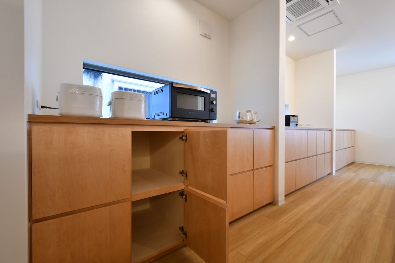桜の名所「四條畷神社」や大自然を満喫できる「緑の文化園」など、緑豊かな四條畷市に「AZ Kai House」はあります。内装やインテリアなどこだわりがたくさん詰まったリビングは、どこか海外を感じさせます。水まわりや専有部は男性と女性専用に分かれ快適に。肩肘張らない、でも、ちょっと自慢したくなるような