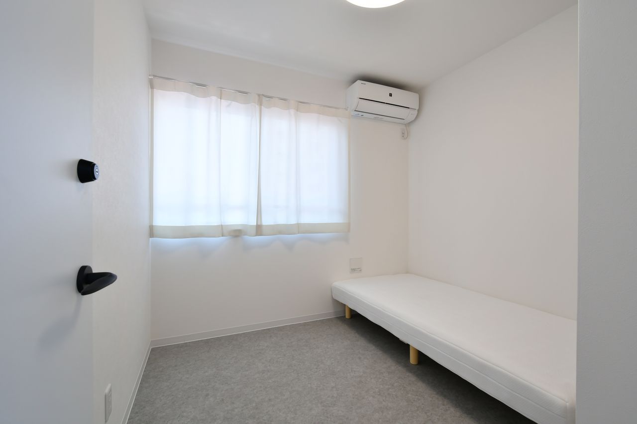 併設コワーキングスペース24時間利用可能。フリーランスの方、出張の多い方に特におススメ!6F、8Fがシェアハウス(各5室)、7Fがシェアオフィス。家賃にコワーキングスペース利用料が含まれており、住人さんはシェアオフィスを自由に24時間使用可能です。2017年、シェアオフィスは更に運動×仕事が成立する場となるよう進化中です!ビルのワンフロアを家にしているので、マンションのような綺麗さ。6Fは洗練されたデザインに和を足して和モダンなハウスになっています。月に一度住人さんみんなで食卓を囲むハウスミーティングはお友達なども参加可能なホームパーティーですので、こちらの参加のみでもお気軽にお問合せください。ハウス情報、6F:リビング、キッチン、風呂、トイレ、洗面台、洋室5部屋、ベランダ。7F:コワーキングスペース、キッチン、芝生エリア、フィットネススペース。8F:リビング、キッチン、風呂、トイレ、洗面台、洋室5部屋、ベランダ。