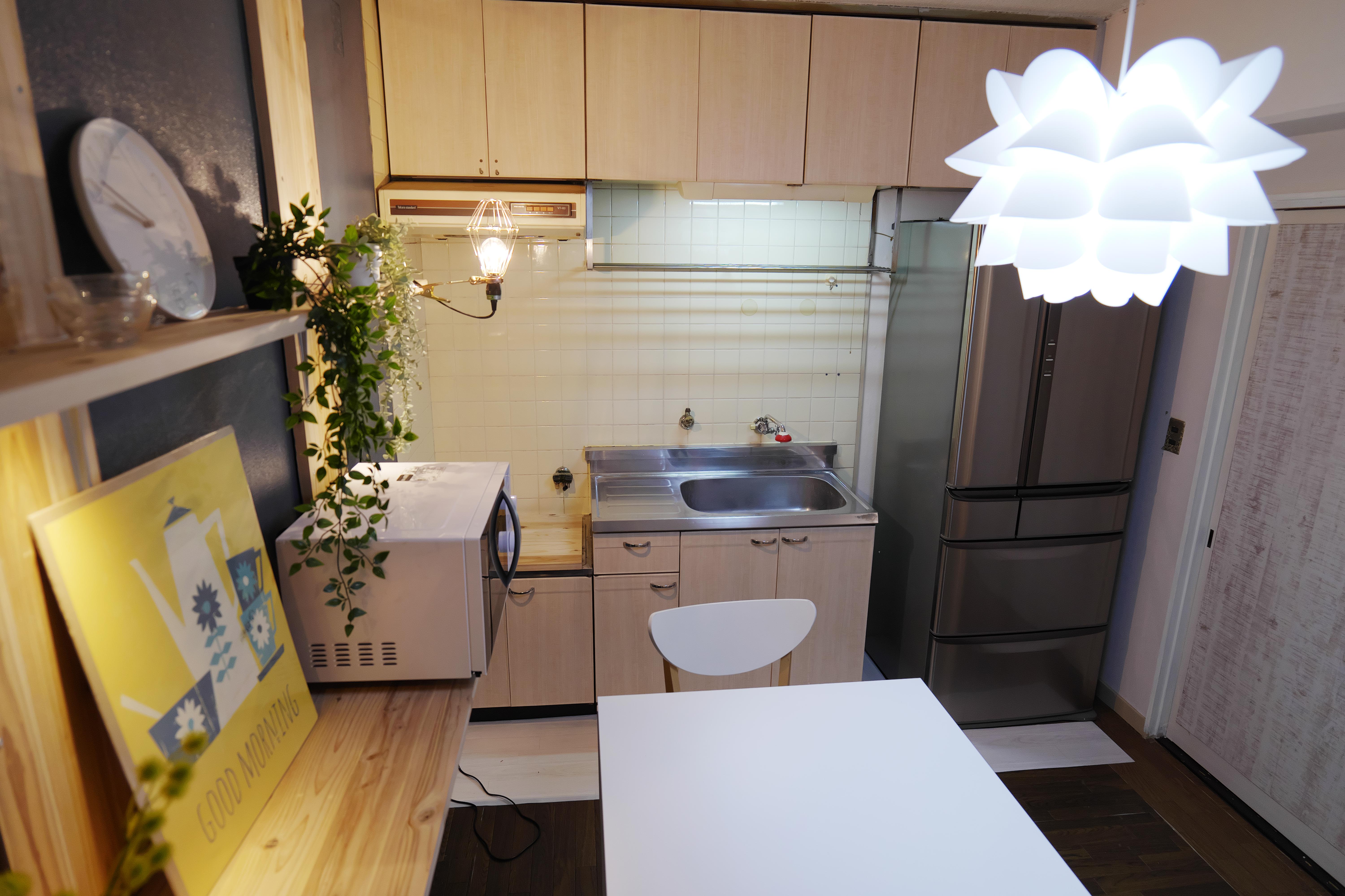 このシェアハウスのテーマは 「GREEN!」です。エコライフをイメージするグリーンを配置したインテリアと広いベランダ。ベランダではゆったりハーブティーを飲む事もできますよ。音楽が好き、カフェ巡りが好き、デザインが好き、ファッションが好き、自然が好き、DIY、アウトドアが好きそんな好きがいっぱい詰まったシェアハウスにしたいと思います。生活に必要な家具、家電はもちろんついていますのでスーツケース1つで、すぐご入居できます。徒歩1分以内でスーパー、コンビニもあり、買い物も楽々です。