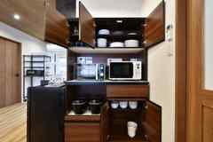 大阪梅田までは自転車圏内、電車で7分の便利な立地にある男女12名のシェアハウスSHELF。コンセプトは「自分色と暮らす家」。天窓から光が差し込むオープンキッチンで料理を楽しみ、隣のリビングシアターではお気に入りの映画や音楽を嗜む。晴れた休日には、縁側に開けたアトリエでDIYに没頭するのもいいし、仲間と個展やワークショップにチャレンジしてもいい。「いつかやってみたかった」憧れの暮らしを、ここからはじめよう。<<SHELFの5つの魅力!>>【■1:自慢のオープンキッチン】リビングと緩やかにつながったダイニングキッチンは、キッチンとカウンターテーブルが一体になったデザイン。ライブ感のある飲食店を思わせる作りです。レストランで使われていたという味わいある椅子や、レトロなテイストの食器類など、細かなアイテムにも愛着が湧くセレクトが魅力です。【■2:大画面の映像とBOSEスピーカー】ラフめに仕上げた内装と高めの天井、落ち着いた家具の組み合わせが雰囲気のリビングには、ドライフラワーと色鮮やかな写真がアクセントに。スクリーン代わりの壁にプロジェクターで映像を映して映画やスポーツ観戦を楽しんだり、BOSEのスピーカーで音楽を流してリラックスしたり、思い思いの心地良い時間を過ごすことができる空間です。【■3:創造力のあふれるアトリエ】自由に使えるアトリエはDIYやものづくりが好きな方にはピッタリのスペース。ちょっとした日曜大工から、大きめの作品づくりまで作業に没頭できそうです。また、各居室の木材パネルの壁はカスタマイズ自由。「空間を住みつないでいく」をテーマに、原状回復も不要です。【■4:集中できるワーキングスペース】小上がりになったスタディコーナーは、壁の両側にデスクのある、掘りごたつ風の設計。緩やかにつながった廊下側からはちょうど作業中の姿が見えないようになっていて、オープンなスペースながら、グッと集中できるおこもり感が味わえます。読書や勉強、リモートワークにもしっかり活用できます。【■5:可能性を広げる「えんがわ」】アトリエからつながる縁側は、日当たりがよく、日向ぼっこにも気持ちの良い場所です。晴れた日には、コーヒーと本を片手に縁側でゆっくりするのもくつろげそう。目の前のオープンスペースは道路に面していて、地域にひらいたイベントも開催可能。屋外とアトリエをつなげて使うこともできて、グッと可能性が広がります。=== はじめてのシェアハウスなら、絆家 ===「ともに、暮らす、それ以上」をテーマに全国13箇所350人規模の拠点を持つコミュニティ重視のシェアハウスです。「ごはん会」「部活動」「まなび場」など、趣味や目的で繋がれるユニークな制度と、清潔でおしゃれなデザインが特徴のシェアハウスです。絆家独自の管理体制とフォロー体制の元、シェアハウス内での共通のルールやマナーが明確なため、シェアハウス初めての方、女性の方も安心して暮らすことが出来ます。
