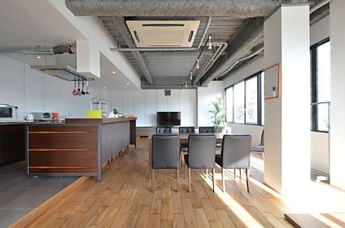 築40年になるかまぼこ屋さんを2014年1月にフル・リノベーションしたシェアハウス。元店舗の1階は約80平米の広い共用スペースで、映画鑑賞やパーティ開場など、趣味や仕事で情報発信や交流の場として利用できます。建物が入っている商店街ではシャッターが目立ちますが、新しい人が集まることで変化の中心として期待されています。全面透明な正面からは、隣近所の方が声をかけてくれ、ある時には物を頂いたりと、交流が生まれています。今までの暮らし+αを考えている方のための趣味や仕事のプラットフォームになる場所にしていきます。