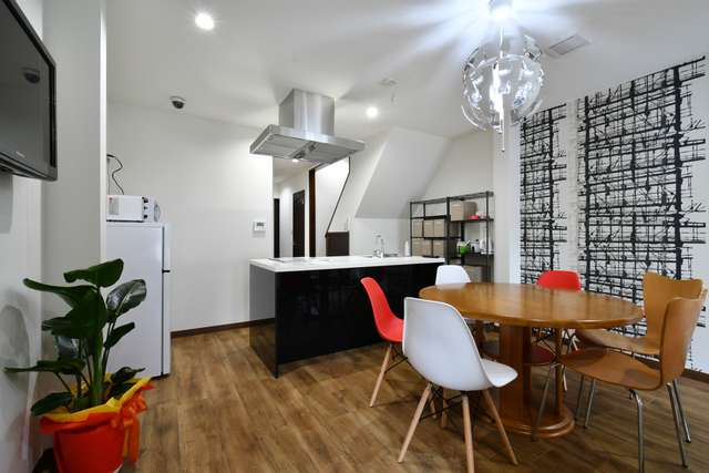 バルコニーでBBQをしたり、広々キッチン&リビングでワイワイ楽しく交流もでき、プライベート空間も充実しています!洗濯機3台、トイレ3箇所、浴室2箇所なので忙しく時間がないときでも安心です。駅までも商店街を通って行けるので、雨にも濡れません!