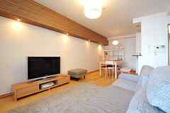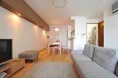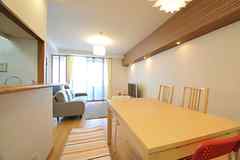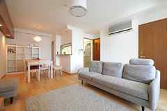 大きなソファと開放的なダイニングテーブルで過ごす、マイペースな時間。カウンターで淹れたてのコーヒーをのんびりと飲む、穏やかな1日がはじまります。