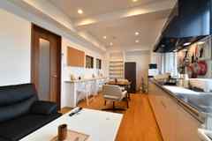 大きなソファと開放的なダイニングテーブルで過ごす、マイペースな時間。カウンターで淹れたてのコーヒーをのんびりと飲む、穏やかな1日がはじまります。