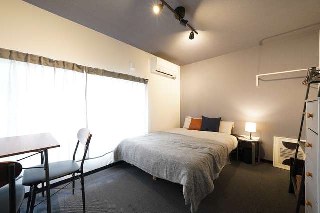 専有部はリビングのあるWEST棟に15室、敷地内にあるEAST棟に1室の計16室。WEST棟はどの部屋も7.5畳のゆったりめのつくりで、部屋ごとにアクセントクロスの色が異なります。全室押入れと物干し竿付き。家具はベッド、机、椅子、TV、ミニ冷蔵庫が揃い、引っ越し当日から快適に過ごすことができそうです。部屋ごとにWi-Fiが使えるのもポイント。EAST棟の1室はキッチンのないワンルームタイプで、男性も入居可能です。